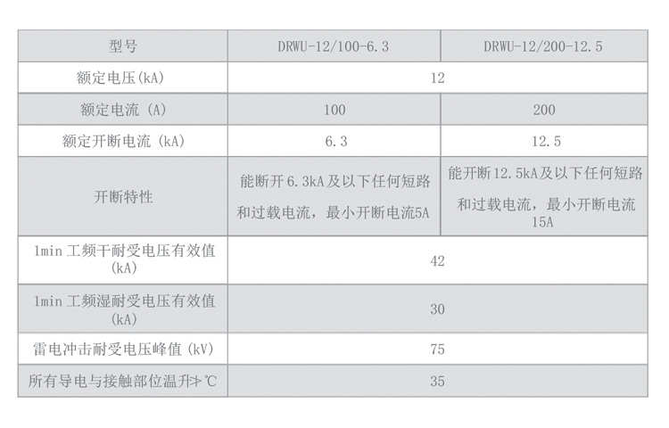 1. 具有良好的開斷特性,可開斷額定開斷電流及以下各種短路的過載電流,最小開斷電流為5A。性能達到國際IEC標準的要求。