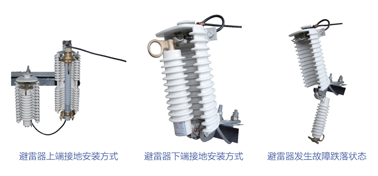 3、避雷器可選擇上端接地安裝方式或下端接地安裝方式。當(dāng)采用上端接地安裝方式時(shí),避雷器與跌落式熔斷器可安裝在同一橫擔(dān)上,整體結(jié)構(gòu)緊湊,節(jié)省空間。用戶可根據(jù)需要選擇相應(yīng)的安裝方式。